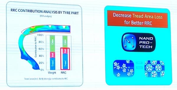“Beberapa faktor yang mampu meningkatkan konsumsi bahan bakar pada kendaraan adalah, pertama hambatan udara pada kendaraan, lalu hambatan akselerasi kendaraan, dan rolling resistance atau hambatan gulir. Faktor rolling resistance pada konsumsi bahan bakar kendaraan cukup besar, yaitu mencapai 23 persn. Jadi kalau faktor hambatan gulir pada kendaraan dapat dikurangi, otomatis konsumsi bahan bakar akan menjadi semakin efisien,” katanya.