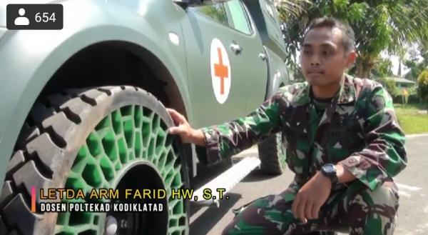 "Pada 2019 kami telah membuat roda tanpa udara. Di mana roda tanpa udara ini nanti akan kami gunakan pada kendaraan taktis TNI Angkatan Darat," ujar Dosen Poltekad Kodiklatad, Letda Arm Farid HW ST.