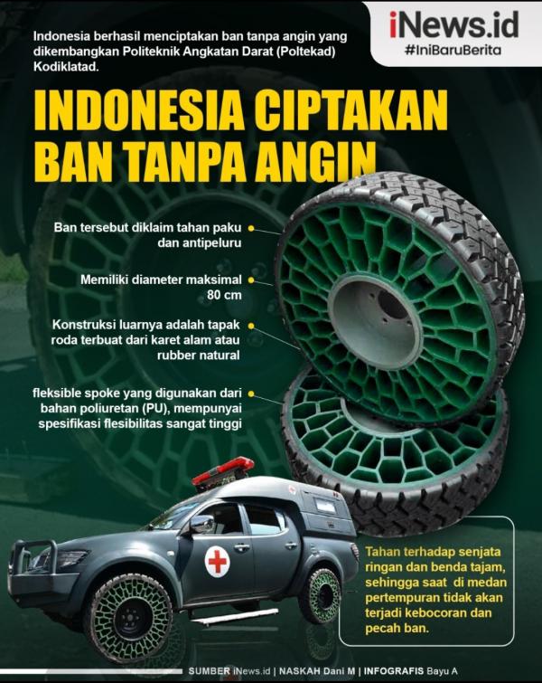 JAKARTA, iNews.id - Tak kalah dengan perusahaan ban dunia, Indonesia berhasil menciptakan ban tanpa angin. Hebatnya, ban tersebut tahan paku dan antipeluru.