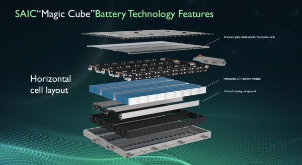 MG memperkenalkan teknologi baterai "Magic Cube" berbasis Cell-to-Pack dengan desain horizontal pertama di dunia. Baterai ini hanya setebal 110 mm, bahkan lebih tipis dari kaleng minuman, namun tetap mampu menyimpan energi sebesar 180 Wh/kg. Ini berarti kapasitas besar dengan dimensi kecil, memberikan stabilitas kendaraan dan ruang kabin yang lebih luas.