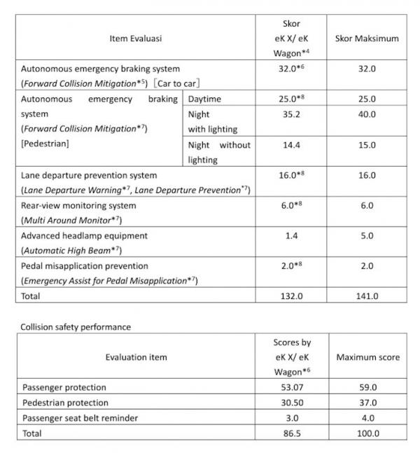 Baik eK X dan eK Wagon menerima skor tertinggi untuk pencegahan keberangkatan jalur, pencegahan kesalahan penggunaan pedal, dan sistem pemantauan tampilan belakang.
