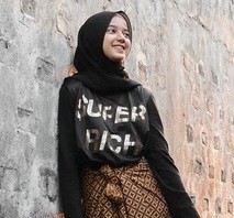 Tampil keren dengan kain Batik, gadis Aceh ini berkreasi mengenakan kain Batik dengan cara melilitkannya lewat teknik layering di setelan serba hitam yang ia kenakan. Pamer OOTD, tak lupa Cut Rauzha memajang pose tersenyum manis.