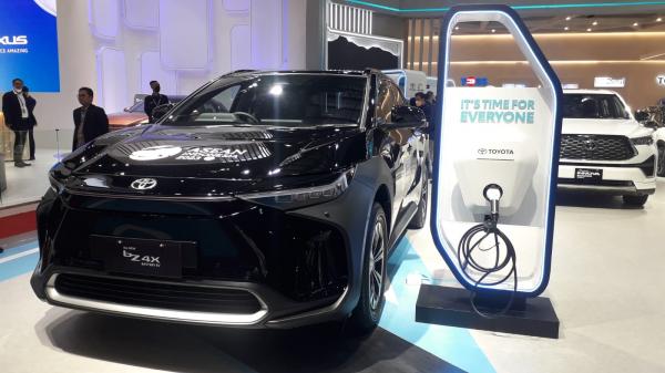 Masuk ke Hall B, pengunjung GJAW 2023 akan disuguhkan mobil listrik bZ4X dari Toyota yang sudah dijual di Indonesia. Namun, mobil tersebut statusnya masih CBU alias impor seutuhnya dari Jepang dengan harga Rp1,19 miliar OTR Jakarta.