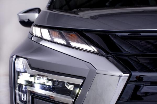 Logo Mitsubishi dijepit lampu DRL LED yang juga berfungsi sebagai sein. Desain lampu utama Xpander kini berbentuk huruf T atau disebut T-Shape.