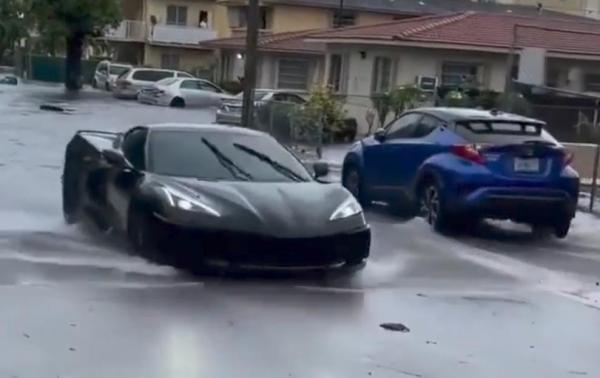 Diketahui, mobil sport itu adalah Corvette Stingray. Mobil ini memiliki dimensi ukuran panjang 4.630 mm, lebar 1.933 mm, dan tinggi 1.234 mm. Mesinnya berada tepat di antara ban belakang, yang berarti mesinnya rawan terendam ketika menerjang banjir.