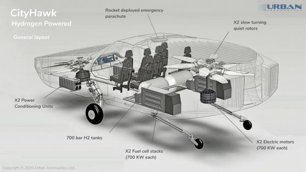 Menurut gambar yang dirilis perusahaan, CityHawk akan memiliki dua tangki bahan bakar hidrogen dan dua bahan bakar sel. Listrik yang dihasilkan akan memberi daya terhadap dua motor listrik masing-masing menghasilkan tenaga 939 hp (700 kW / 952 PS).