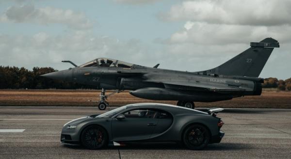 14 tahun kemudian, penggantinya Bugatti Chiron kembali beradu kekuatan dengan jet tempur Dassault Rafale Marine. Pesawat kebanggaan angkatan laut Prancis ini adu kecepatan di pangkalan angkatan laut Landivisiau, wilayah barat Prancis.