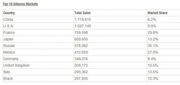 Angka penjualan mereka meningkat setelah memasukkan merek Mitsubishi dalam aliansi. Masing-masing Mitsubishi membukukan penjualan 1,03 juta unit, Nissan 5,82 juta unit dan Renault mengantarkan 3,76 juta unit.