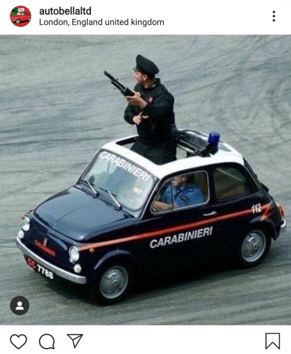 Urusan jantung pacu, Fiat 500 model polisi itu kemungkinan masih menggendong mesin 2-silinder naturally aspirated karburator berkubikasi 479 cc yang sanggup memuntahkan tenaga 13 hp dengan torsi puncak 27 Nm dikawinkan dengan transmisi manual 4-percepatan.