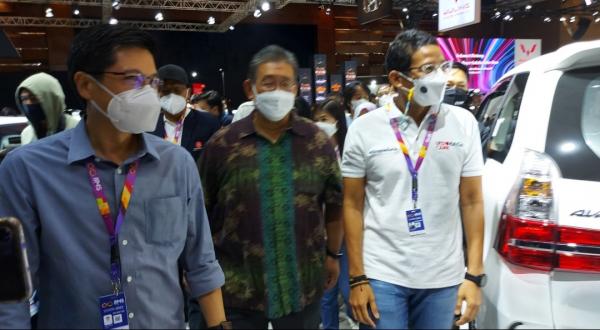 JAKARTA, iNews.id - Menteri Pariwisata dan Ekonomi Kreatif (Menparekraf) Sandiaga Uno mengunjungi ajang Indonesia International Motor Show (IIMS) Hybrid 2021, Minggu (18/4/2021). Dalam kunjungannya, Sandi ditemani Presiden Direktur PT Dyandra Promosindo, Hendra Noor Saleh (Kohen) sebagai penyelenggara acara IIMS.