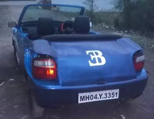 Bugatti versi murah ini dicat dengan warna khas Bugatti, yakni biru muda dan biru tua. Bagian depan menggunakan gril dan logo Bugatti. Parahnya, di bagian belakang ada logo EB yang hanya dilukis tangan.