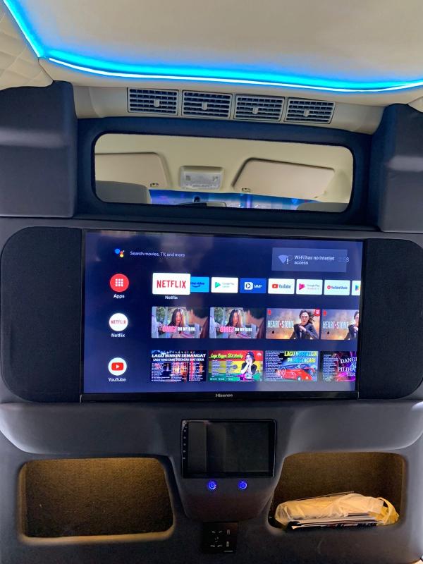 Privasi penumpang juga terjamin karena CKM menghadirkan dinding partisi yang dilengkapi dengan TV LED 32 inci berkemampuan android. Tidak lupa juga audio yang berkualitas dan dilengkapi dengan fitur karaoke sebagai hiburan khusus selama perjalanan.