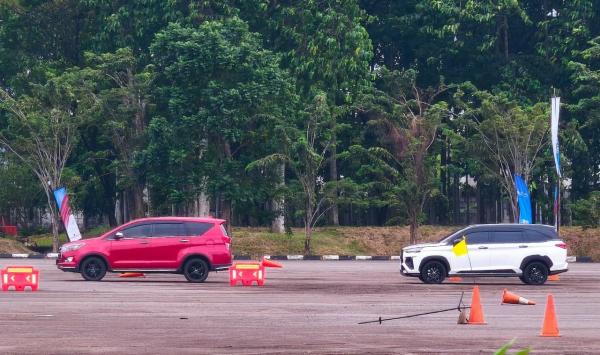 Tantangan berikutnya adalah jalur semi slalom dengan kecepatan 40 km/jam. Lagi-lagi, Veloz Hybrid menunjukkan performa stabil dengan traksi yang baik. Mobil tidak ragu bermanuver dan suspensi bekerja meredam gejala goyang, handling stabil memberikan rasa percaya diri bagi pengemudi.
