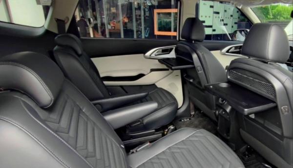 Untuk konfigurasi tempat duduk, Kia Carens 6 seaters memiliki sistem captain seat dibaris kedua lengkap dengan meja lipat.