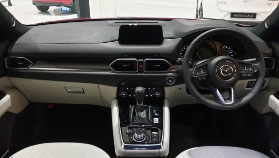 Masuk ke ruang kabin, Mazda CX-8 memiliki konfigurasi kursi 3-baris dengan kapasitas 7-seater. Pabrikan asal Jepang itu juga menyematkan AC climate control, sistem infotainment touchscreen, dan jok sopir elektrik.