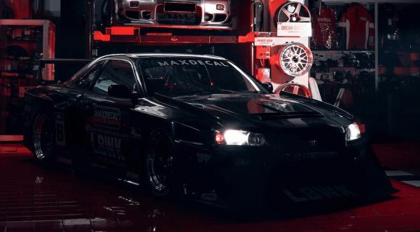 Karya Maxdecal juga disematkan pada Nissan GT-R R34 “Godzilla Man” terinspirasi dari mobil balap Nissan Skyline GT-R32. Mobil tersebut dibalut dengan stiker Maxdecal 9600 Flex Wrap Print Candy.