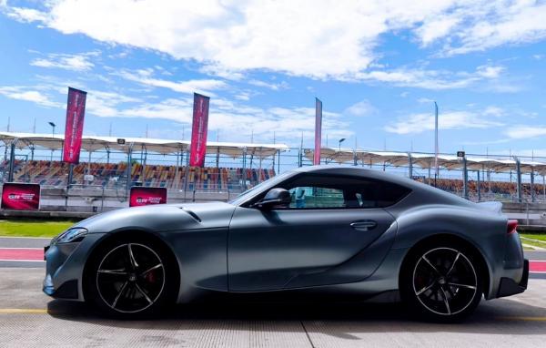Mobil pertama yang dijajal, GR Supra. Mobil sport ini mengadopsi mesin 3.000 cc 6-silinder inline yang secara spartan sanggup menghasilkan tenaga 350 PS pada 5.000-6.500 rpm dan torsi 500 Nm pada 1.600-4.500 rpm. Twin-scroll Turbocharger memastikan engine sanggup menyalurkan power terbaik di setiap rentang putaran mesin ke transmisi 8-speed otomatis.