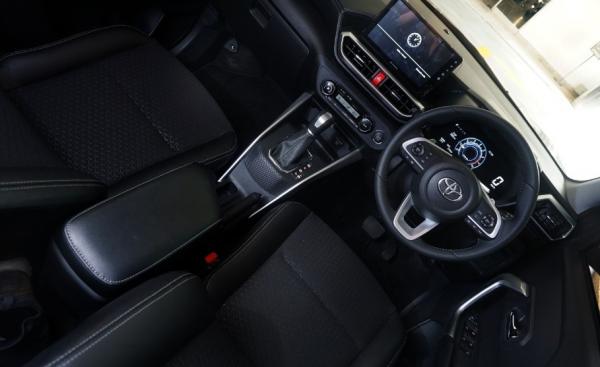 Sementara itu, desain interior Raize terasa simpel dan modern dilengkapi fitur MID 7 inch TFT dengan display interaktif yang dapat diganti-ganti dalam empat opsi tampilan, yaitu Advanced, Exciting, Simple, dan Analog. Terdapat juga advanced features lainnya, seperti Steering Switch, Interior Illumination, serta Interactive 9 Inch Head Unit dengan floating design dan terkoneksi dengan smart device T-Link, serta mempunyai fitur Personal Reminder. Di mana fitur dapat dimanfaatkan sebagai pengingat aturan pelat nomor ganjil-genap dengan memasukkan data mobil ke dalam sistem.