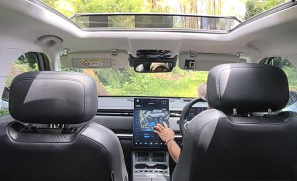 Pusat kendali kendaraan berada pada head unit vertikal berukuran 14,8 inci yang ditenagai prosesor Snapdragon. Layar ini menjadi pusat kontrol berbagai fitur seperti navigasi, pengaturan AC, hingga kamera 540 HD panoramic.
