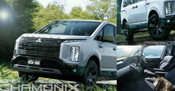 Mitsubishi Delica D:5 mendapatkan dua pilihan paket Chamonix, standard an komplet. Detail keduanya dilengkapi aksen mika hitam pada gril, lampu depan, spion, dan gagang pintu.