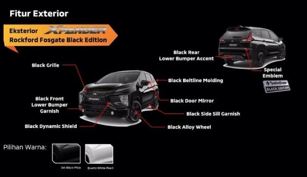 Xpander Rockford Fosgate Black Edition tersedia dalam dua pilihan transmisi, yaitu manual dan otomatis. Untuk warna yang disediakan, Jet Black Mica dan Quartz White Pearl.