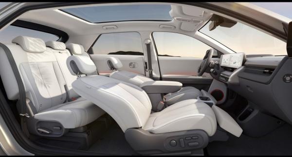 IONIQ 5 juga dilengkapi dengan jok depan yang dapat diatur secara elektronik. Kursi dapat direbahkan ke sudut optimal, menawarkan perasaan tanpa bobot bagi penumpangnya. Hyundai juga mengurangi ketebalan jok depan hingga 30 persen, memberikan lebih banyak ruang bagi mereka yang duduk di baris kedua.