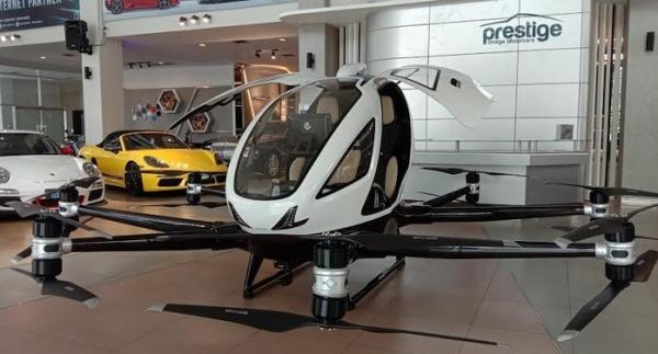Mereka mendatangkan mobil terbang Ehang 216. Taksi terbang berkapasitas dua tempat duduk ini didatangkan melalui importir umum Prestige.