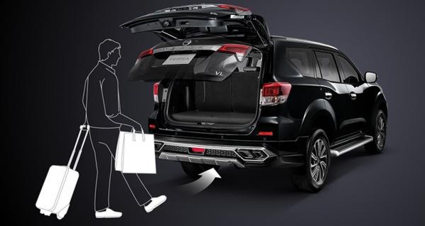 Sektor belakang terpasang skidplate silver dipadu dengan bumper baru, serta ornamen silver yang membingkai knalpot palsu. Selain itu, hadir juga fitur electronic power tail gate kick sensor di pintu belakang.
