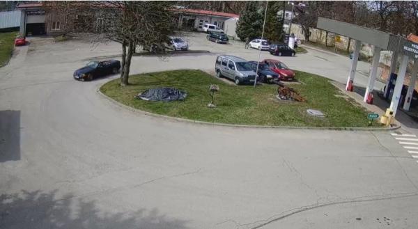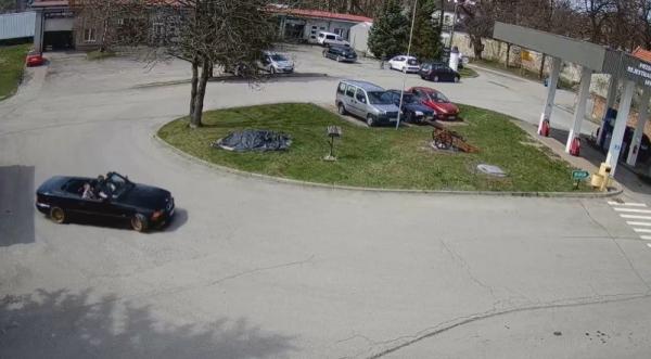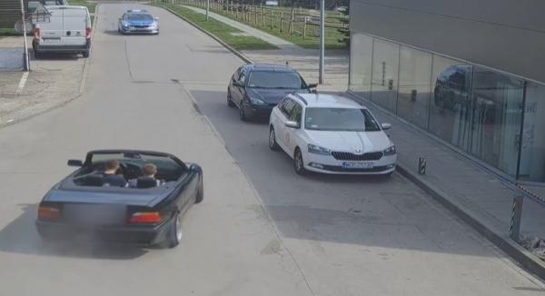 Adegan tersebut tertangkap kamera CCTV (keamanan) di sebuah pompa bensin kawasan Siercza, Polandia. Tampak pengemudi BMW 3-Series meluncur di tikungan menuju jalan utama hanya bertemu dengan mobil polisi yang menunggu dengan nyaman.
