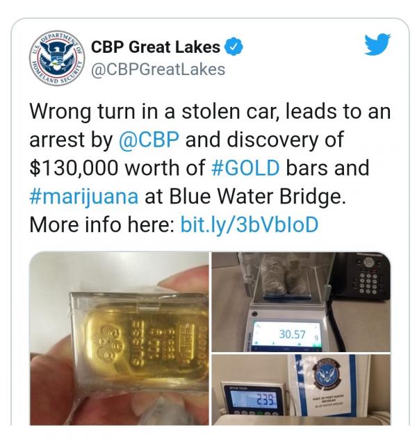 Setelah menangkap perempuan itu, petugas CBP menyerahkan kasus tersebut kepada Polisi Negara Bagian Michigan. Sementara emas, ganja, dan kendaraan curian diserahkan ke MSP.
