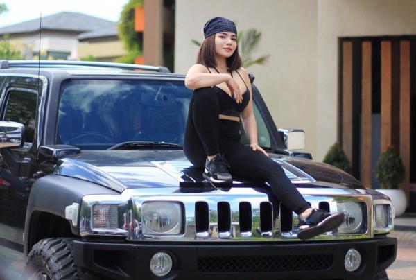 Tak hanya itu, wanita asal Bandung ini juga berpose dengan menduduki kap mesin SUV besar dan gagah yaitu Hummer H3. Memadukan outfit senada berwarna hitam memberikan kesan seksi dan sporty.