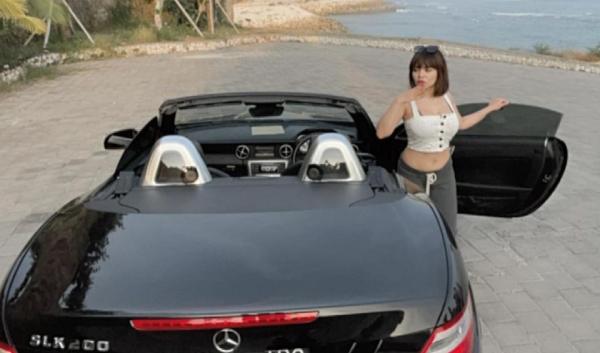 Dia kembali berpose bersama mobil dua pintu atap terbuka (cabriolet) Mercedes Benz SLK 200. Foto tersebut diabadikan saat berlibur di Bali.