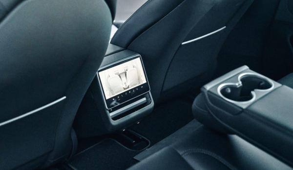Sistem audio dirancang oleh Tesla dengan 17 speaker, subwoofer ganda, dan amplifier ganda. Penumpang belakang memiliki akses ke layar sentuh 8 inci dengan kontrol iklim dan hiburan.