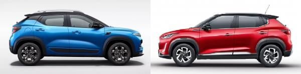 Hal yang membedakan adalah bahasa desain dan logo dari kedua mobil ini. Nissan Magnite menggunakan bahasa desain V-Motion, sementara Renault menonjolkan logo yang besar di bagian depan.