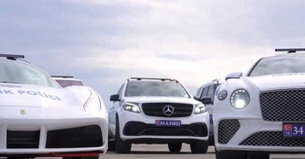 Tidak tangggung-tanggung mobil-mobil sport, seperti Ferrari 488 GTB dan Porsche Taycan Turbo S kini jadi mobil harian yang digunakan polisi Turki. Mobil-mobil lainnya juga tak kalah mentereng adalah Bentley Continental GT, Land Rover Range Rover, Audi A6, Mercedes-Benz G-Class, Mercedes Benz GLS, BMW Seri 1 dan lainnya.
