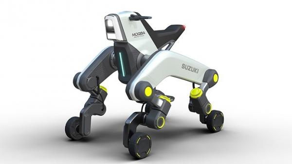 dengan setang yang diperbarui dengan sensor ultrasonik. Suzuki juga memamerkan MOQBA, alat mobilisasi empat kaki