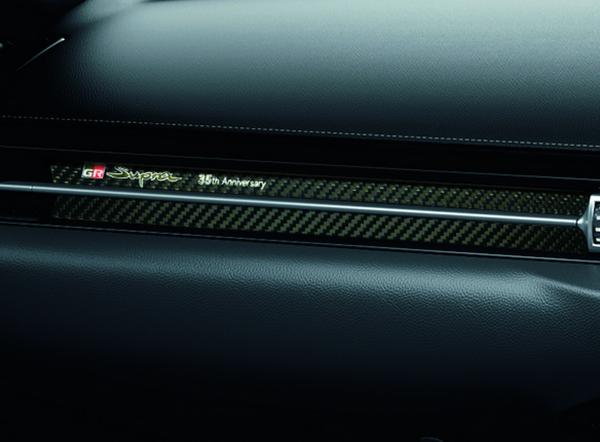 Toyota mengungkapkan mobil varian 35th Anniversary Edition akan menampilkan cat terbaru, yaitu metalik Matte Storm Grey. Terdapat ubahan dari segi exterior mobil yang diproduksi limited edition ini, yaitu ubahan kaca spion dicat warna hitam matte, terdapat Big Brake Kit (BBK) besar dicat warna merah berlogokan Supra GR.