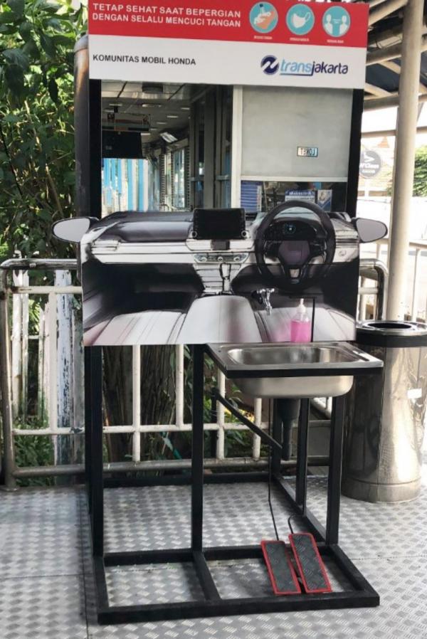 Unik, Komunitas Mobil Honda Sumbang Tempat Cuci Tangan Berbentuk Dasbor di Halte Busway