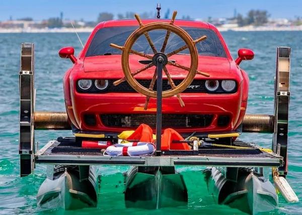 Selain itu Cody Detwiler juga menyiapkan penampang buat mobil tersebut. Jadi penampang tersebut menahan Dodge Challenger Hellcat agar tidak tenggelam.