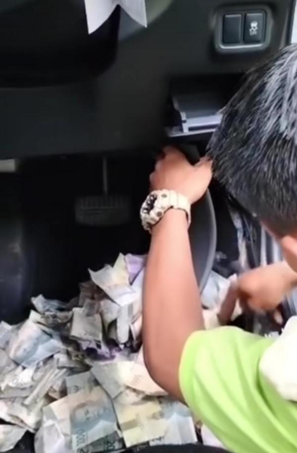 Dalam video tesebut, terlihat pecahan uang, mulai dari Rp2 ribu, Rp5 ribu, sampai Rp10 ribu terselip di dalam dashboard. Diperkirakan nominalnya bisa sampai ratusan ribu rupiah karena jumlahnya sangat banyak.