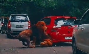 Viral Mobil Merah Ditabrak Singa di Taman Margasatwa: Netizen Bingung Gimana Cara Klaim Asuransi