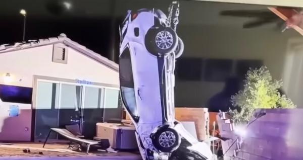 Para penyelidik mengatakan pengemudi tersebut diduga ngebut beberapa saat sebelum gagal berhenti, menabrak dinding, dan meluncurkan kendaraan ke halaman belakang tetangga seperti adegan dalam film aksi. Tentu saja, tanpa kru pemeran pengganti dan perencanaan keselamatan.