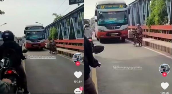 Viral Sopir Bus Pilih Jalan Pelan Ikuti Ibu-Ibu Dorong Sepeda, Netizen: Netes Air Mataku, Mulia Akhlakmu