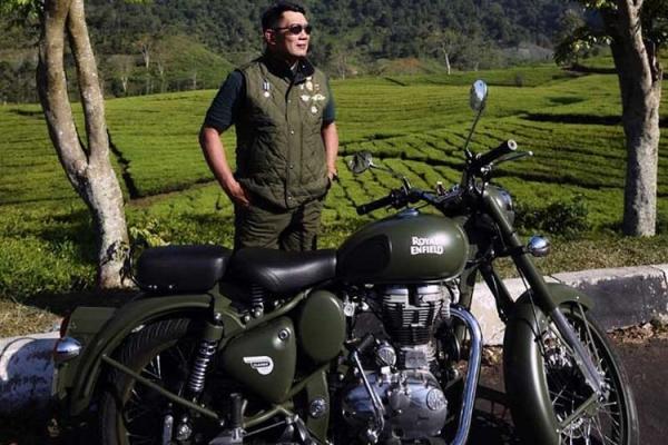 Dalam beberapa unggahan dia juga kerap mejeng dengan moge Royal Enfiled Classic. Bahkan, Kang Emil memberikan hadiah istrinya Royal Enfield berwarna putih yang telah dimodifikasi khusus.