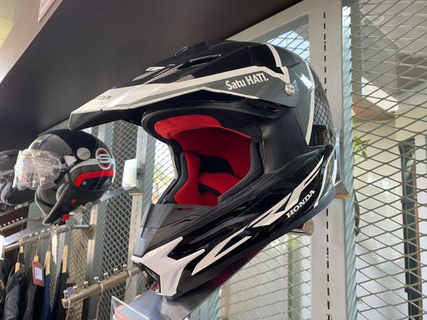 Bagian atasnya terdapat pelindung tambahan untuk melindungi dari terik matahari dan lumpur. Perbedaan lainnya, helm ini tidak menggunakan kaca atau mika helm pada umumnya, melainkan menggunakan kacamata khusus atau yang biasa disebut goggle.
