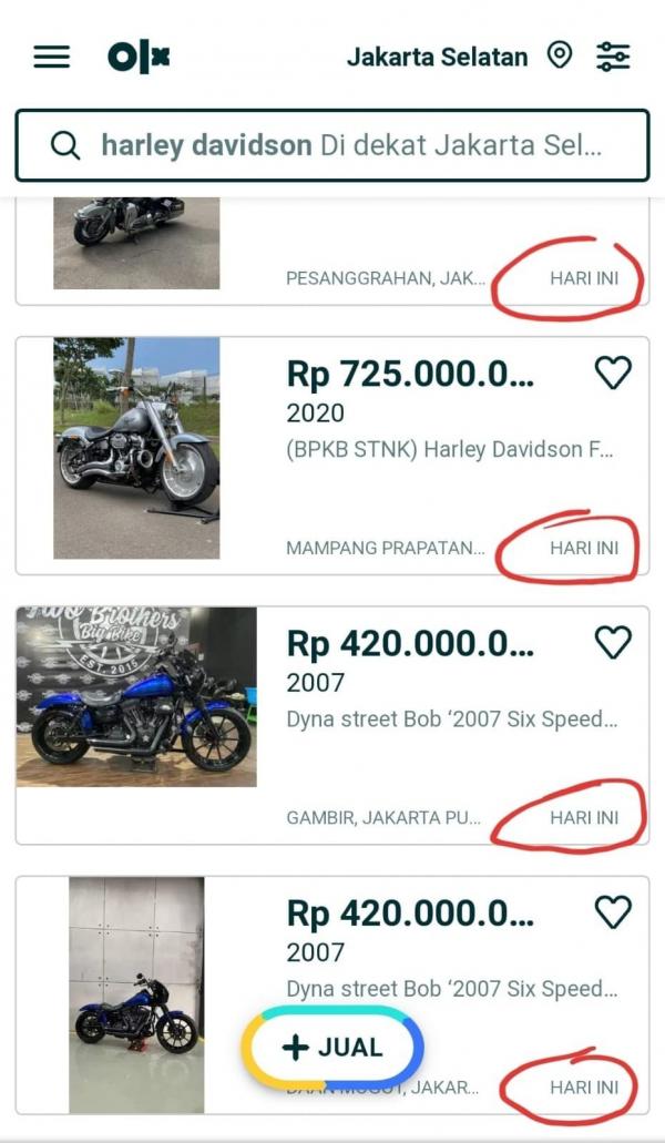 Entah ada kaitannya atau tidak, postingan situs jual beli tersebut menjadi perbincangan hangat publik. Tampak Harley-Davidson bekas yang dijual dalam postingan kemarin dan hari ini dihargai ratusan juta rupiah, mulai dari Rp198 juta hingga Rp725 juta. Beberapa hari sebelumnya juga terdapat postingan Harley-Davidson yang ditawarkan senilai Rp2,1 miliar.