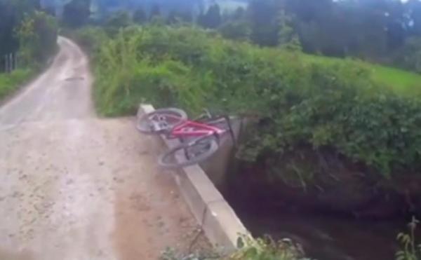 Tapi, kejadian diluar prediksi terjadi ketika pria tersebut ingin memfoto sepedanya. Karena, tiba-tiba sepeda tersebut langsung nyemplung ke sungai dengan aliran yang deras.