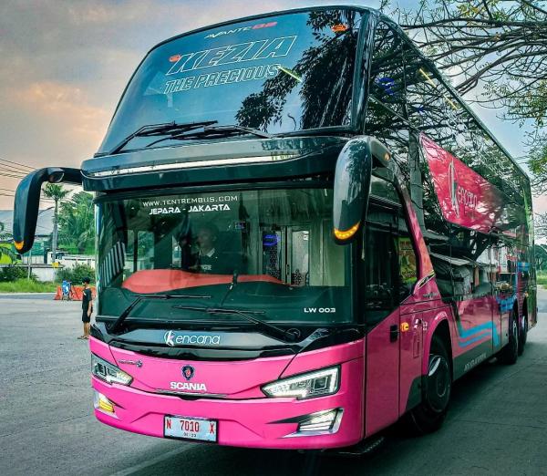 Permainan warna yang imut itu tentu jadi sangat cocok dengan bus doubler decker bernama Kezia. Jadi jika Anda sempat menaiki bus PO Kencana bernama Kezia, Anda jadi akan tahu cerita yang ada di baliknya.