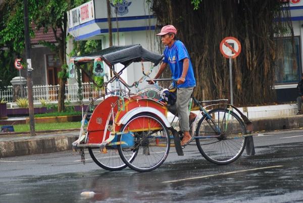 Di urutan pertama ada transportasi umum yang dikenal dengan nama Becak. Becak merupakan alat angkut beroda tiga yang umum ditemukan bukan hanya di DKI Jakarta tapi juga daerah lainnya di Indonesia.