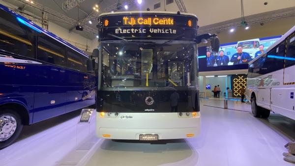 Selain bus konvensional, karoseri Adi Putro juga memamerkan bus listrik milik KG Mobility (KGM) dengan menggunakan sasis Edison. Bus ini merupakan pengembangan sasis monocoque dengan desain yang kompak.